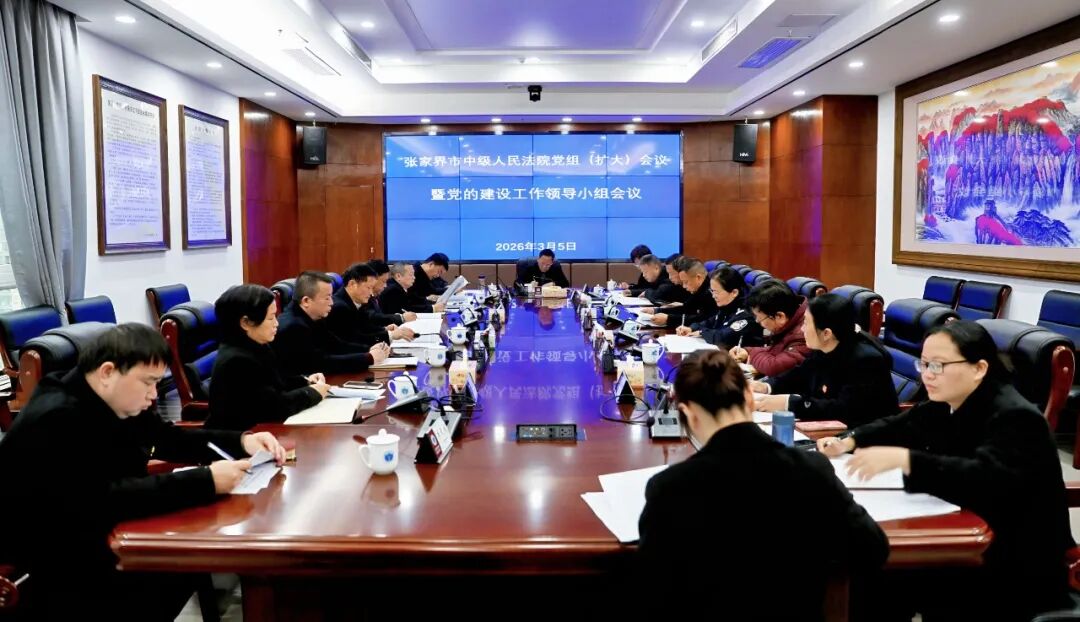 湖南日报·新湖南客户端3月6日讯(通讯员 李天成 陈醉)3月5日上午,张家界中院召开党组(扩大)会议暨党的建设工作领导小组会议,传达中央、省委、市委和上级法院相关要求,研究部署市法院机关学习教育工作。张家界中院党组书记、院长陈建新主持会议并讲话。