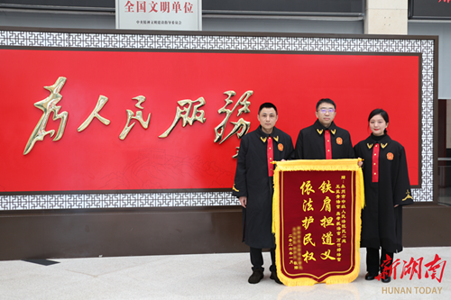 湖南日报·新湖南客户端3月6日讯(通讯员 黄卫红)“感谢永州中院法官秉公司法,为民司法。”近日,永州市中级人民法院民二庭收到当事人李某送来的锦旗,锦旗上“铁肩担道义,依法护民权”的金色字眼显得耀眼而生动。