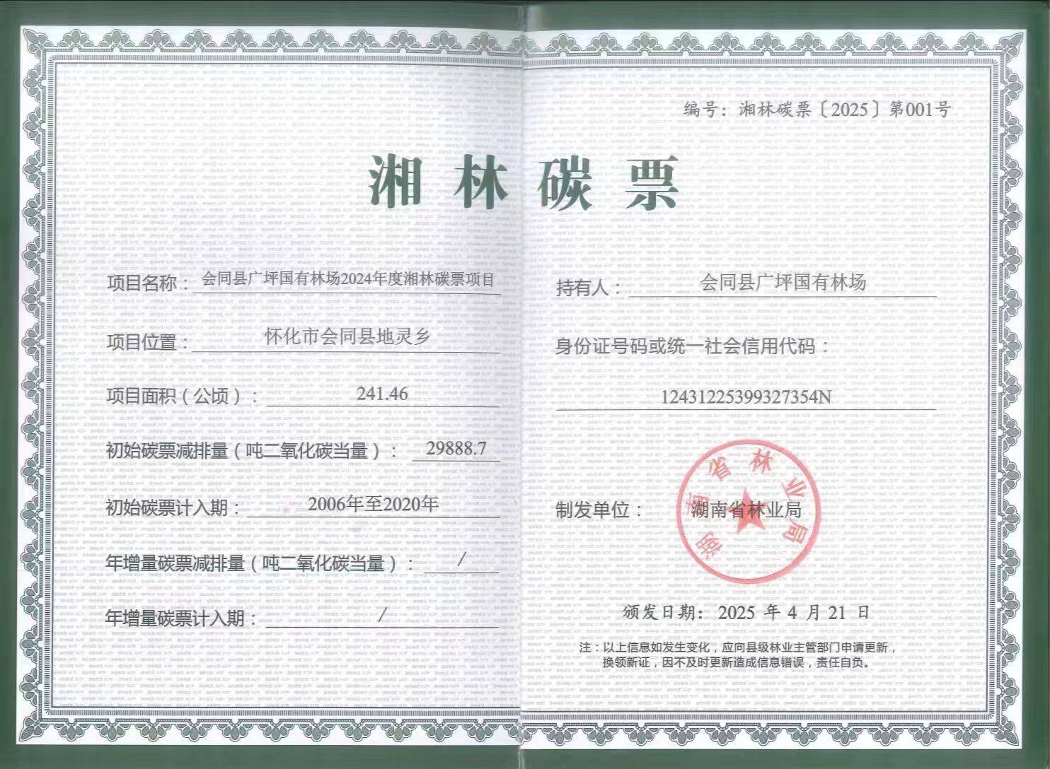(通道湘林碳票)