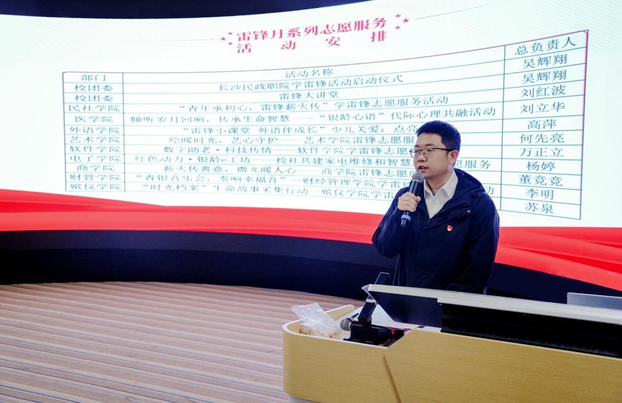 春风送暖传美德,薪火赓续践初心。3月5日,第63个学雷锋纪念日、第27个中国青年志愿者服务日,长沙民政职院“雷锋精神永传承,青春奋进新征程”学雷锋月启动仪式在该校5栋201教室举行。校党委委员、副校长张国辉出席,校团委全体干部,各学院党总支副书记、团总支书记及学生代表齐聚现场,共同开启本年度学雷锋志愿服务新征程,让雷锋精神在校园沃土上绽放新时代光芒。