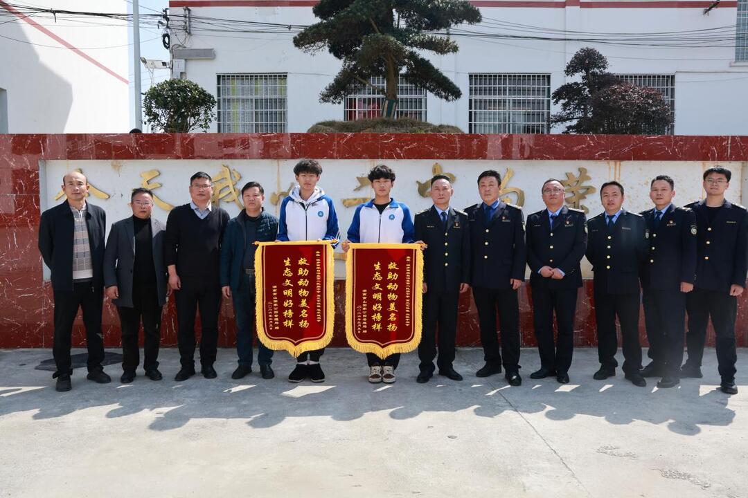 “收到锦旗我们很惊喜,也很感动。”手捧锦旗的毛羊城难掩激动,“以后我们会继续关注野生动物保护,也希望更多人能加入进来,共同守护我们的美丽家园。”他的同学向振宇也获赠了同样满载荣誉与期许的一面锦旗。