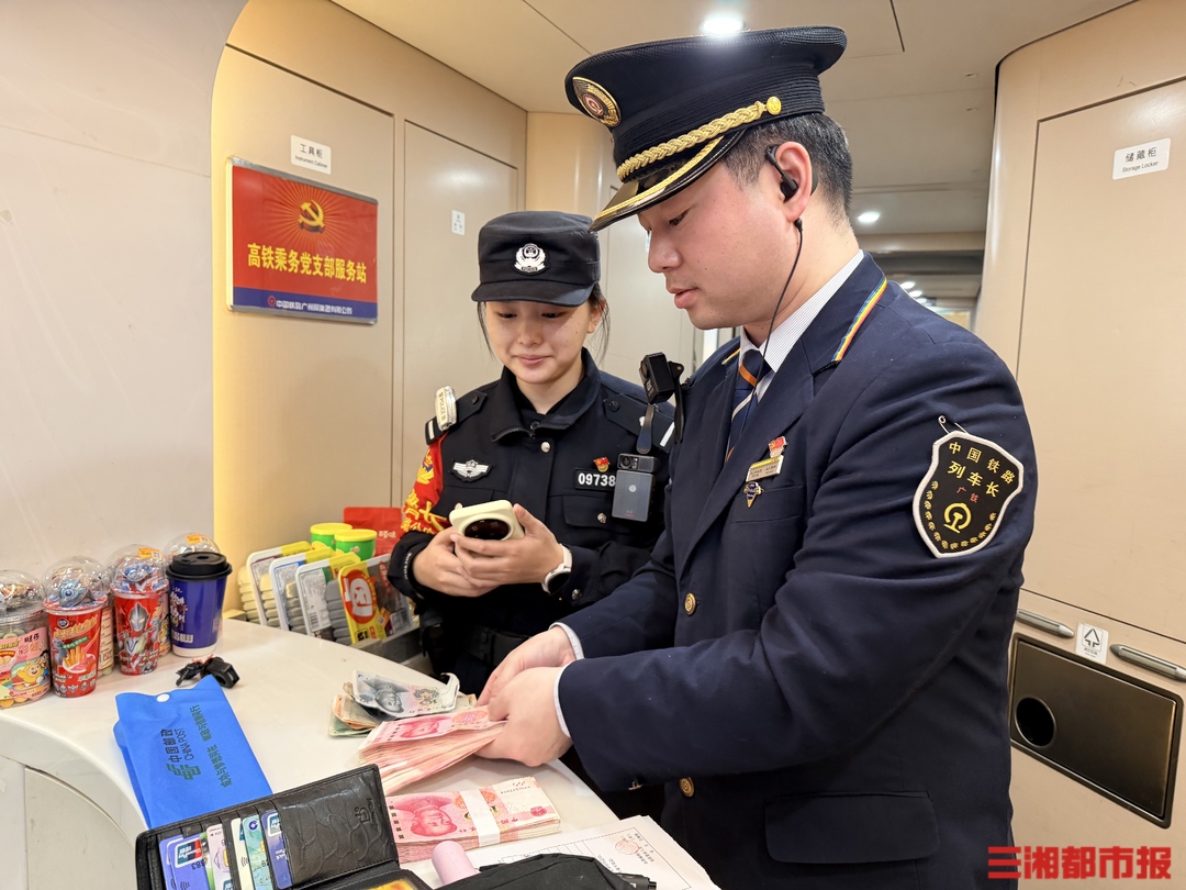 三湘都市报·新湖南客户端3月6日讯(全媒体记者 李致远 通讯员 肖衡铉 刘子月)3月5日18时30分,一名旅客在郑州东站匆忙下车后,发现装有近1.8万元现金的背包遗落在8号车厢。焦急万分的他立即通过12306发出紧急求助。接到工单后,广铁集团长沙客运段长沙动一车队党员列车长乌兰梅林与乘警翁杨迅速响应,第一时间赶赴8号车厢,锁定遗失背包。经现场清点,包内17610元现金分文不少。