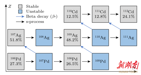 109Ag附近s-过程路径示意图