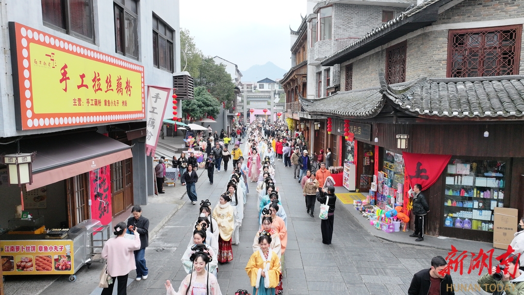 “快看,‘花神’来了,也太有氛围感了!”3月6日,洪江市黔阳古城东门口,来自长沙的游客李莉举着手机,追着缓缓前行的巡游队伍,难掩欣喜地与同行伙伴分享眼前的惊艳。千年古城,正因一场春日盛事焕发别样生机。