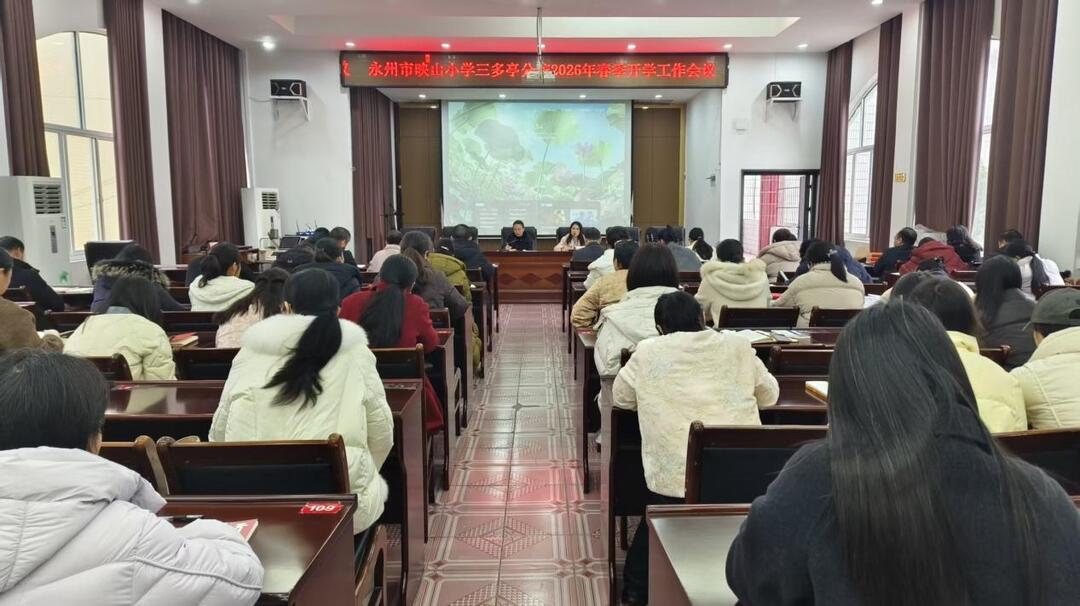 新湖南客户端3月6日讯(通讯员 徐双 唐艳玲)近日,永州市映山小学三多亭分校召开2026年春季开学工作会议,全体教师齐聚一堂,共谋新学期发展蓝图。会议由党支部书记邓春红主持,通过师德培训、工作部署、精神传达及总结动员四大环节,为新学期教育教学工作注入强劲动力。