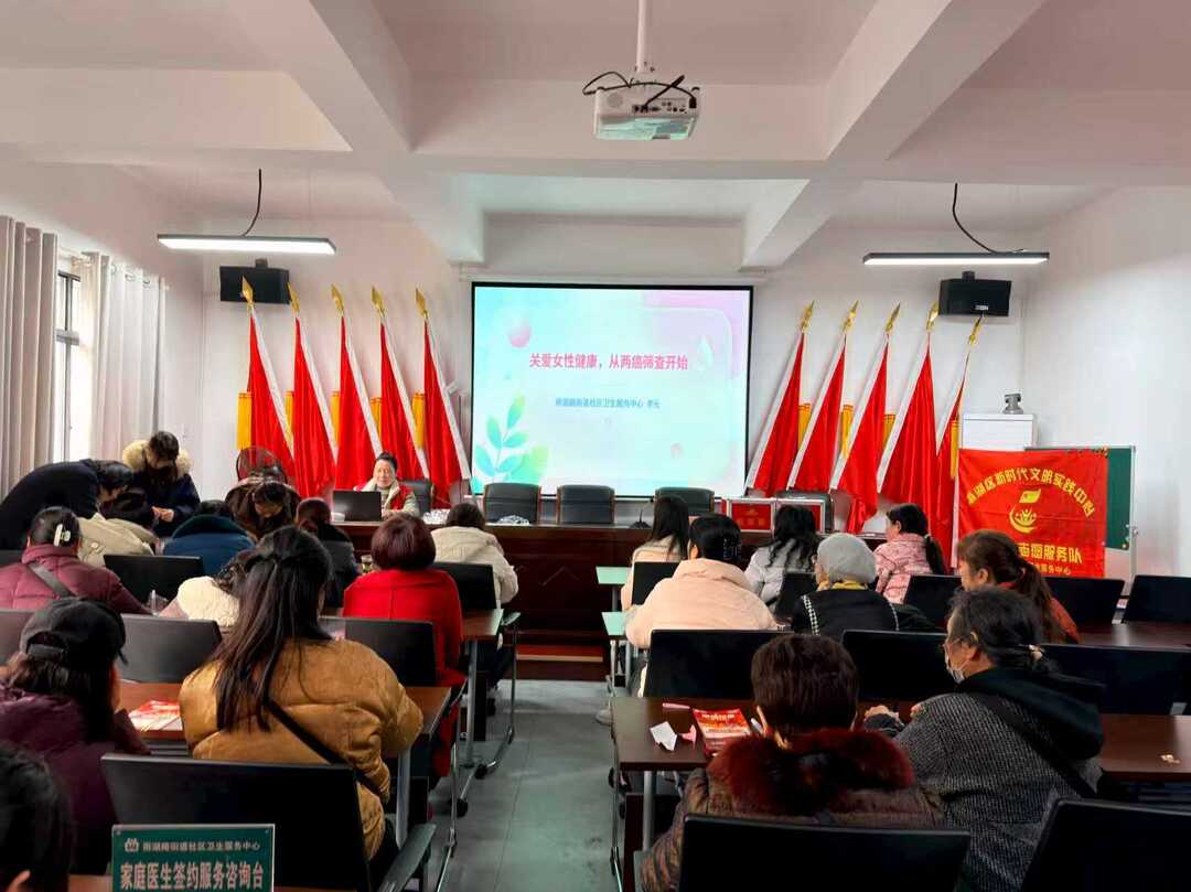 上午9时,车站路社区二楼会议室座无虚席。李医生用通俗易懂的语言,围绕宫颈癌和乳腺癌的发病原因、早期信号、筛查手段及预防措施进行了详细讲解。“两癌并不可怕,关键在于早发现、早诊断、早治疗,定期参加筛查是保护自己最好的方式。”还特别介绍了当前面向辖区适龄妇女的免费妇科检查项目,包括检查内容、参与条件及预约方式,鼓励符合条件的女性积极参检,为自己的健康撑起“保护伞”。