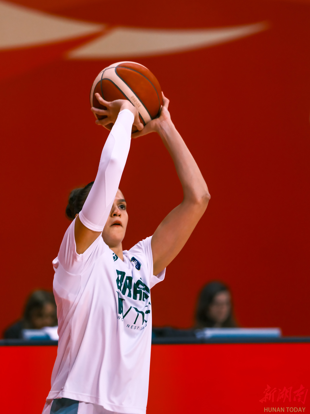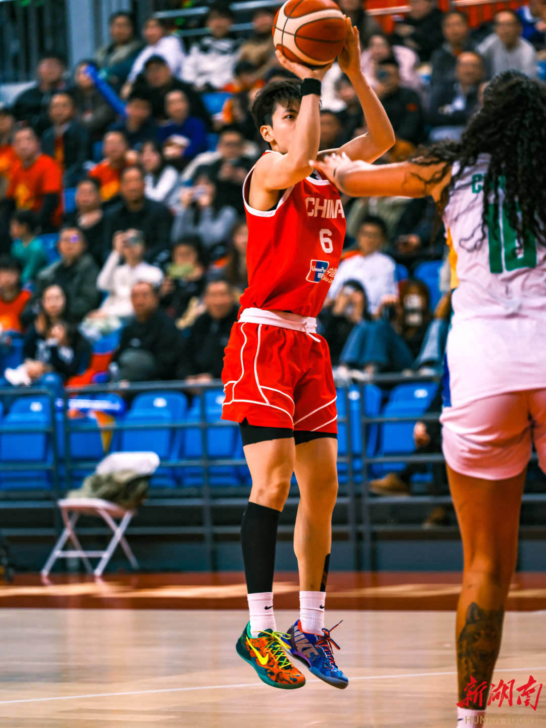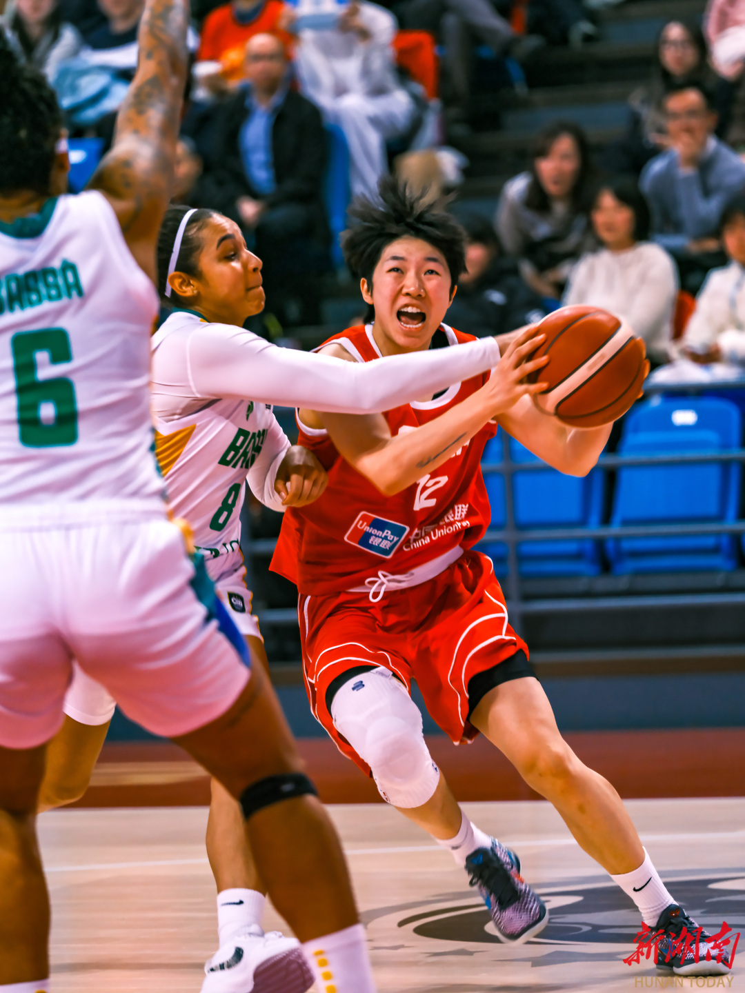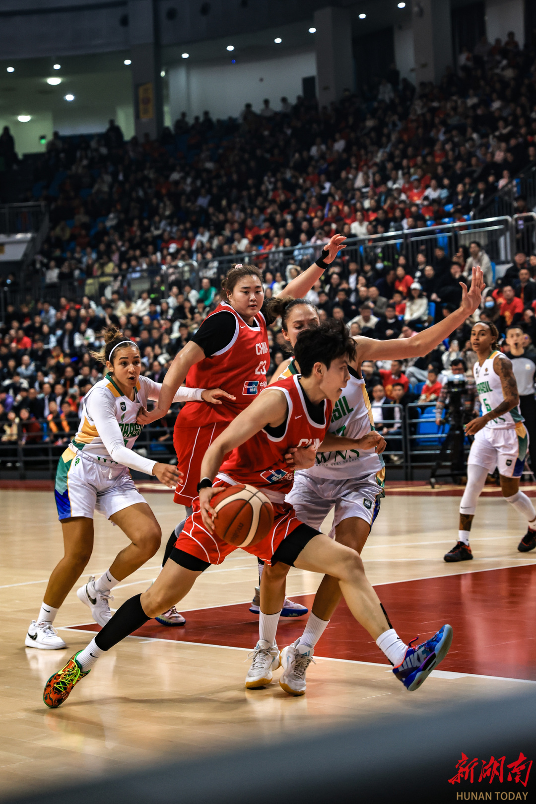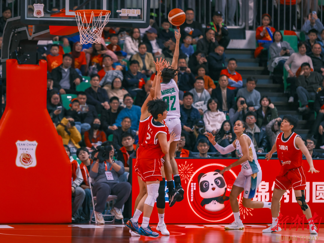 3月6日晚,长沙民政职业技术学院大运馆,2026年中国女篮国际热身赛(长沙站)第二场比赛,中国女篮以72比66战胜巴西女篮。(刘丰 叶竹 摄)