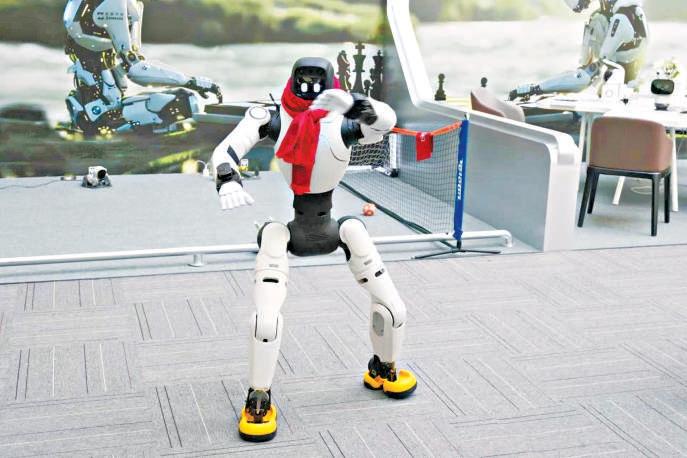 不远处,几台形态各异的智能机器人各显神通。有的在高精度机械臂和灵巧手的配合下弹奏悦耳乐曲,有的随着音乐旋律起舞,甚至完成高难度武术动作。还有几台巴掌大的小机器人在空地上窜来窜去,互相碰撞、翻滚,热闹程度丝毫不输“大个子”们。