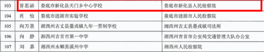 湖南日报·新湖南客户端3月7日讯(通讯员 吴小洁)近日,湖南省第二届“百名优秀法治副校长”“百堂精品法治课”评选结果揭晓,新化县检察院表现突出:全市共有10名法治副校长入选,该院占1席;全市10堂法治课获评,该院占2堂。其中,曾思涵同志获评“百名优秀法治副校长”,她与段璐同志录制的法治课同获“百堂精品法治课”殊荣。