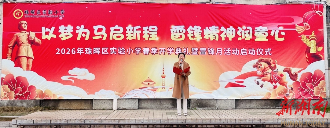 科教新报·新湖南客户端讯(通讯员 曾文萃)春回大地,骏启新程;薪火相传,雷锋同行。3月6日上午,衡阳市珠晖区实验小学全体师生齐聚前操场,举行“以梦为马启新程 雷锋精神润童心” 2026年春季开学典礼暨雷锋月活动启动仪式。活动由史依鑫、唐子航同学主持,在庄严热烈、昂扬向上的氛围中,开启新学期新征程,奏响学雷锋、践初心的时代强音。