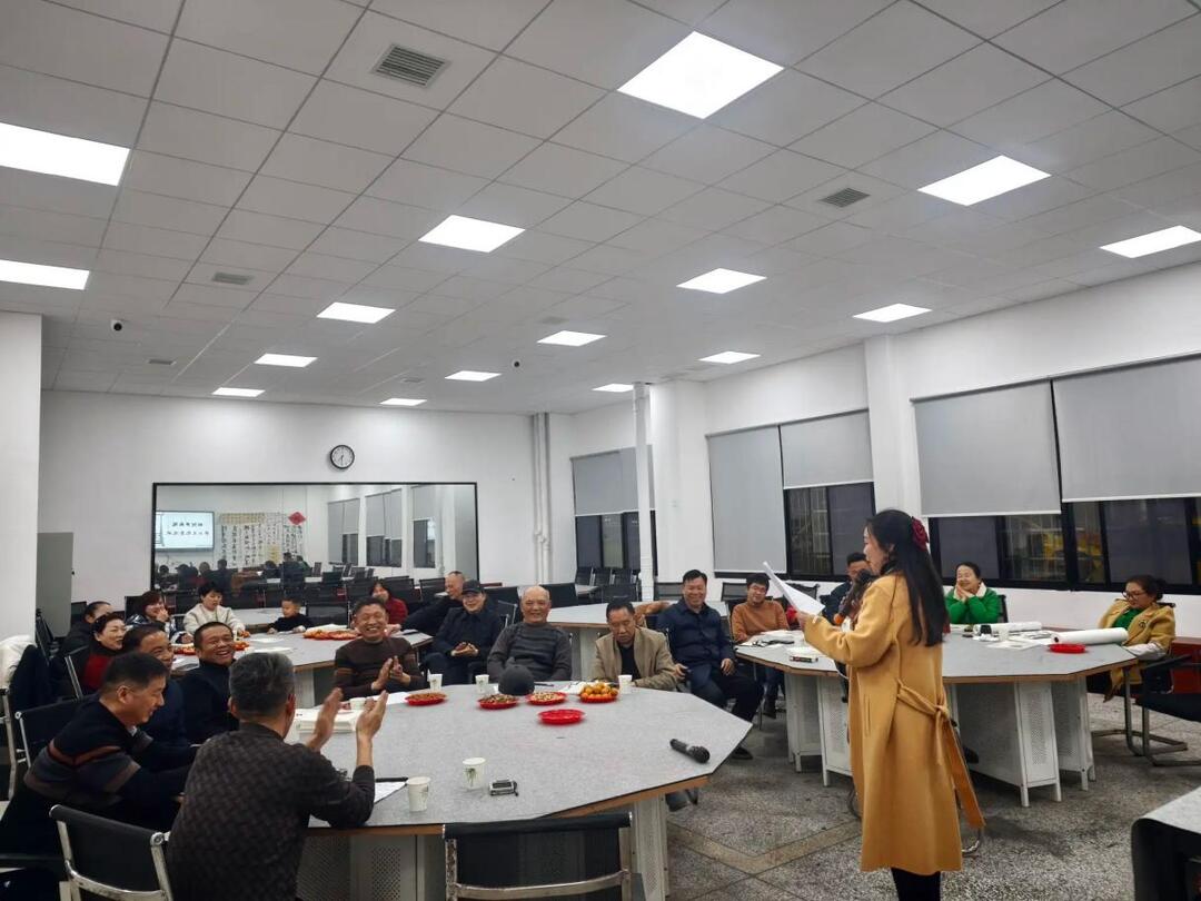 茶话会在轻松热烈的氛围中开始。主持人以“考考大家”的方式引出话题,在场老友对答如流——湘阴书画院成立于2011年,院长是胡超美老师。据介绍,书画院成立十余年来,始终坚持扎根本土、服务群众,通过举办展览、公益培训、送春联进万家等活动,成为湘阴县弘扬书画艺术、服务书法爱好者的重要平台。
