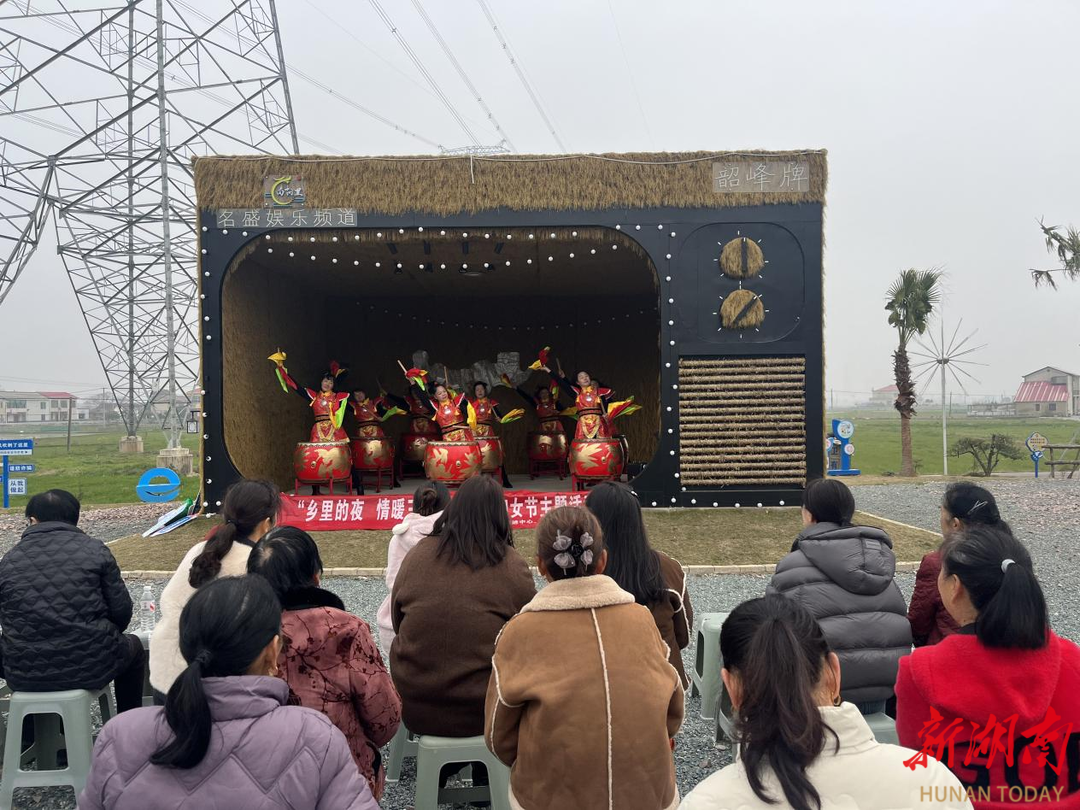 活动现场,法律顾问结合典型案例,深入浅出地讲解妇女权益保障相关法律知识,切实提升妇女群众的维权意识。街道社工链接望城爱尔眼科的医务志愿者开展爱眼SPA体验服务,为妇女同胞送去健康关怀。文艺志愿团队在“乡里的夜”乡村大舞台献上了一场自编自演的文艺汇演,她们身着鲜艳服饰,踏着欢快的节拍,表演了鼓舞、扇子舞和广场舞等精彩节目,展现新时代农村女性的巾帼风采与蓬勃活力。台下观众掌声不断,现场洋溢着欢乐的节日氛围。