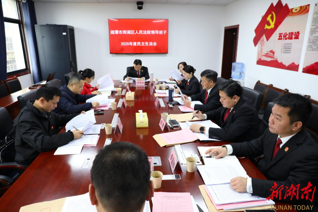 湖南法治报·新湖南客户端讯(通讯员 琚珍珍)近日,湘潭市雨湖区人民法院党组召开2025年度民主生活会。区委政法委副书记王强、区委督导组成员到会指导。区人民法院党组书记、院长杨立主持会议,班子全体成员参加会议。