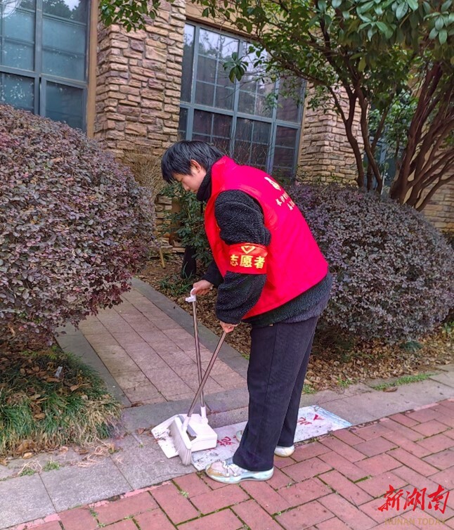 凛冽的寒风冻红了他的双手,反复弯腰让他腰背酸痛,但他从未停下脚步。有社区老人劝他歇一歇,他总是笑着回应:“这点累不算什么,把家门口打扫干净,大家住着舒心,我也心里踏实。”这份朴素的坚守,让他从一名“高校学子”,变成了邻里口中“靠谱的小熊”。在他的带动下,不少居民也主动加入清扫队伍,从“旁观者”变成“参与者”,形成了“人人动手、共建家园”的良好氛围。