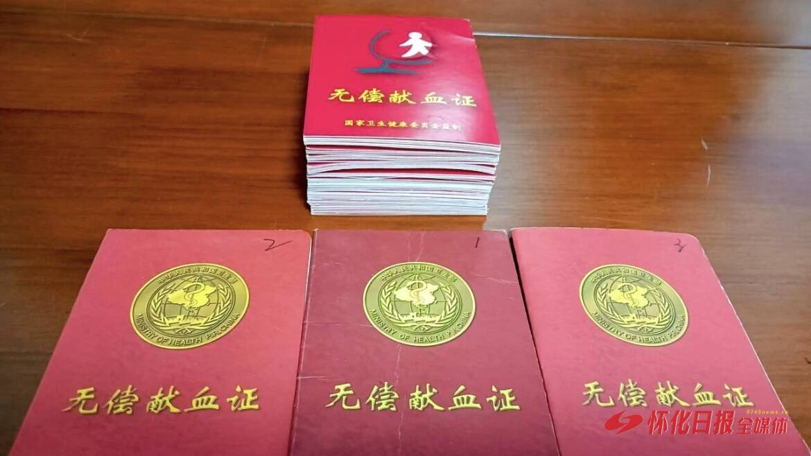 (肖霖彬拥有厚厚一叠的无偿献血证)