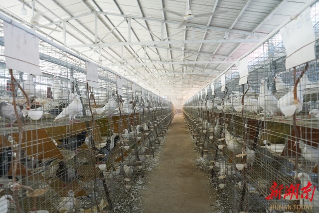 技术有了,良种有了,如何把过去“单打独斗”的农户组织起来?为此,村干部们通过入户走访、开屋场会等形式,收民意、集民智,探索“村集体经济组织+公司+产业基地+农户”的可持续发展模式,实现肉鸽养殖“统分”化,采取统一供种、统一孵化、统一技术、统一饲料、统一回收、农户分散饲养。