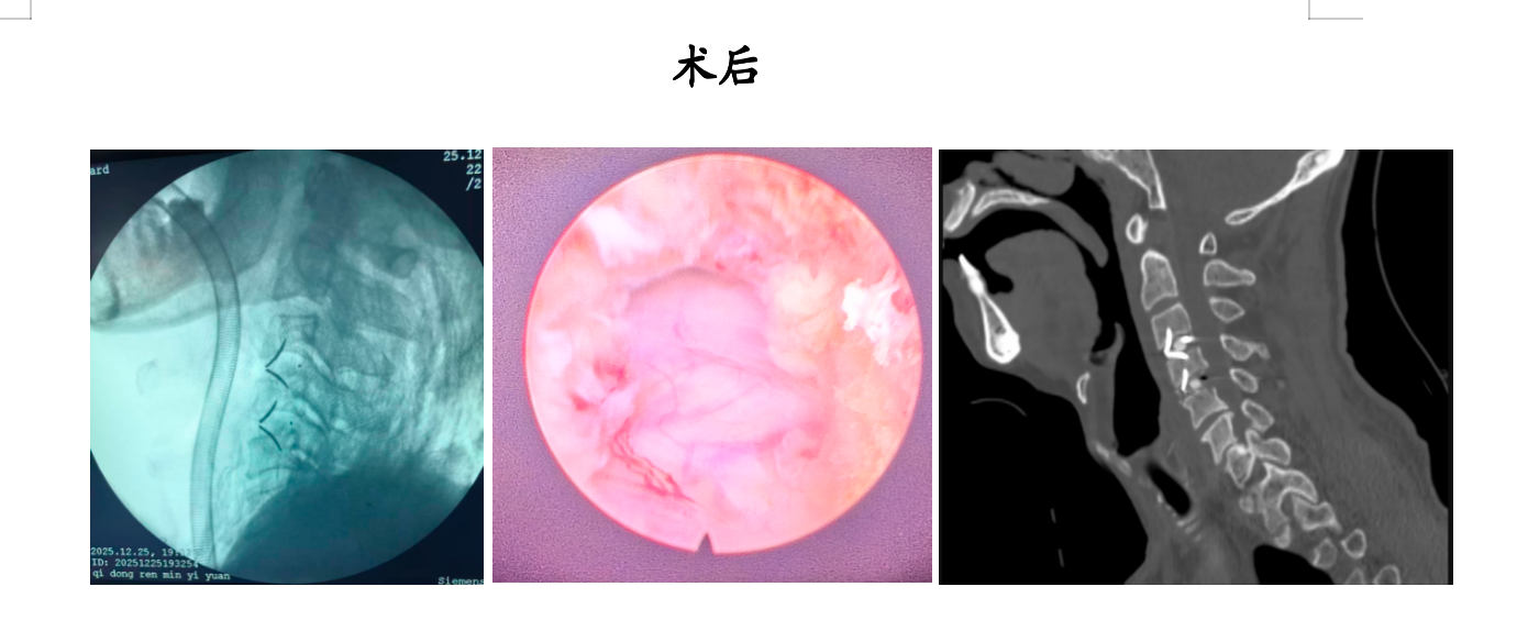 医疗团队在镜下精准完成了椎间盘/髓核摘除、椎管减压等核心步骤,彻底解除了脊髓与神经的压迫。随后,通过微小切口精准植入融合器与内固定装置,有效重建了脊柱的生理曲度与力学平衡。