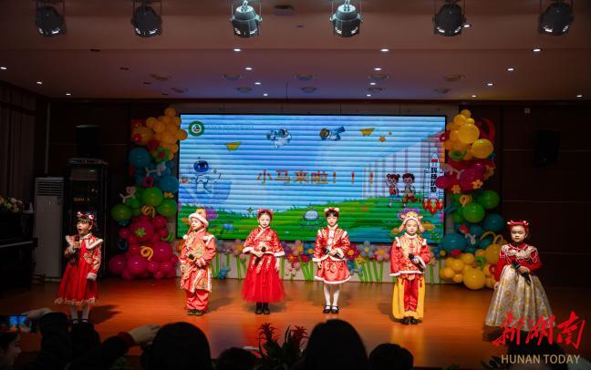 “嘿!你们看,咱们今天变成小马队啦!”稚嫩的童声拉开了典礼的序幕。六名小演员头戴马饰,你一言我一语,聊着马年的寓意、寒假的见闻,还有那神秘的“吉量”神马与即将登场的机器人。当《山海经》里的神兽与现代科技在对话中相遇,古老与未来在这一刻奇妙交织。“快请快乐的小马驹们上台吧!”话音刚落,一群活泼的“小马”跃上舞台。旋转、跳跃、欢笑——开场舞《快乐小马》用最灵动的舞姿,踏响了春天的第一个节拍,也踏出了新学期的蓬勃朝气。
