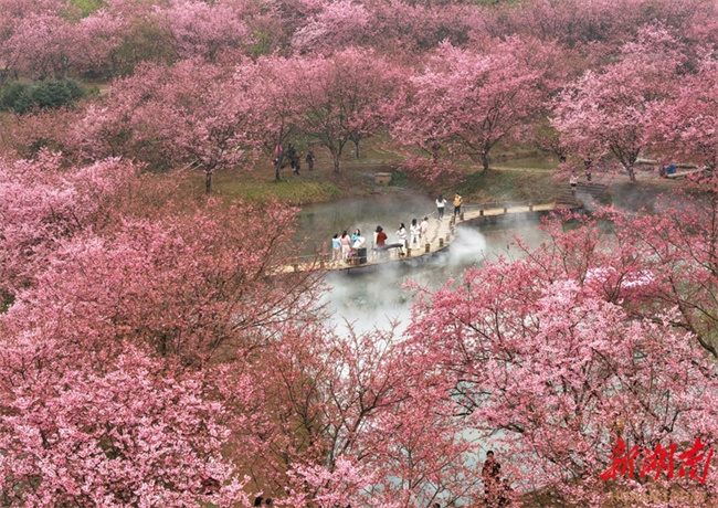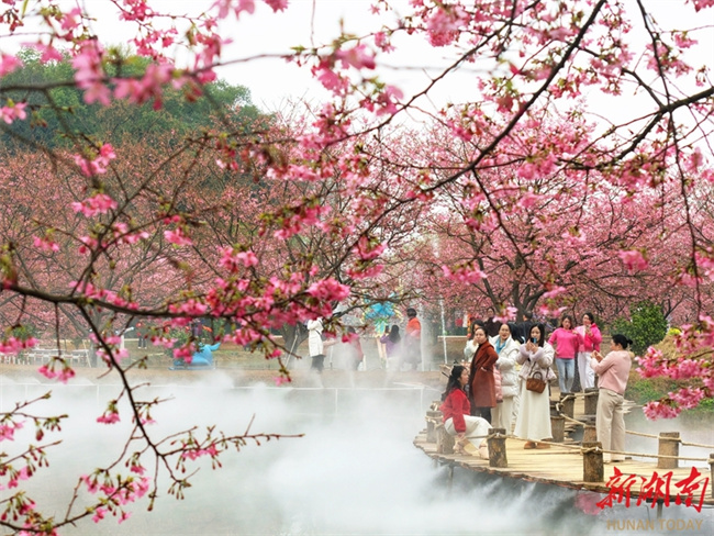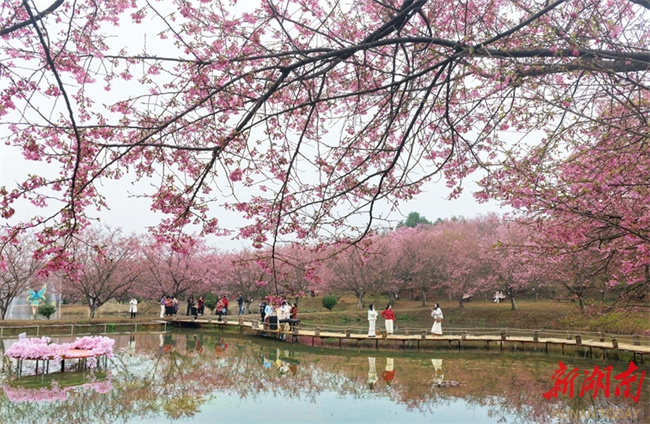 The photo, taken on March 7, shows visitors enjoying cherry blossoms at a garden in Changning City. Recently, various cherry blossoms have bloomed in succession throughout the garden, presenting an enchanting spring scene. Many residents are taking advantage of the fine weather to admire the blossoms and savor the beautiful springtime moments. (Photo/Zhou Shaoben and Cao Zhengping)