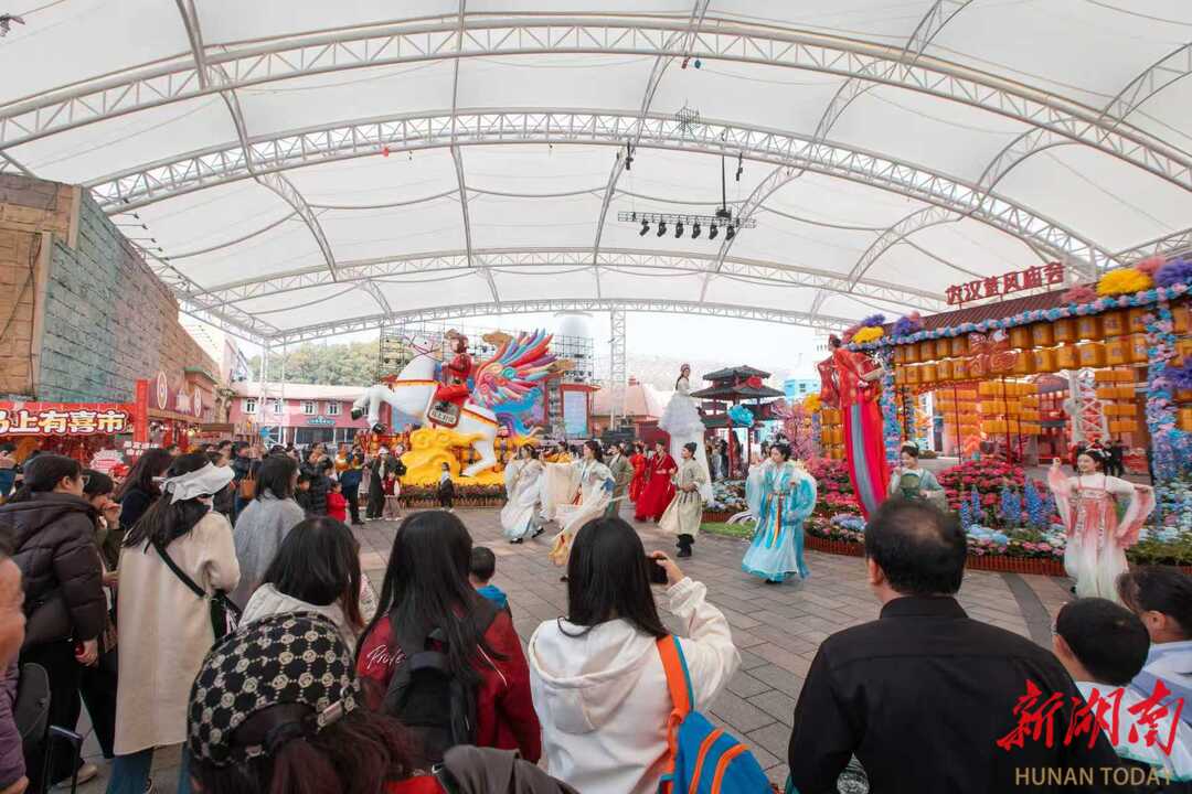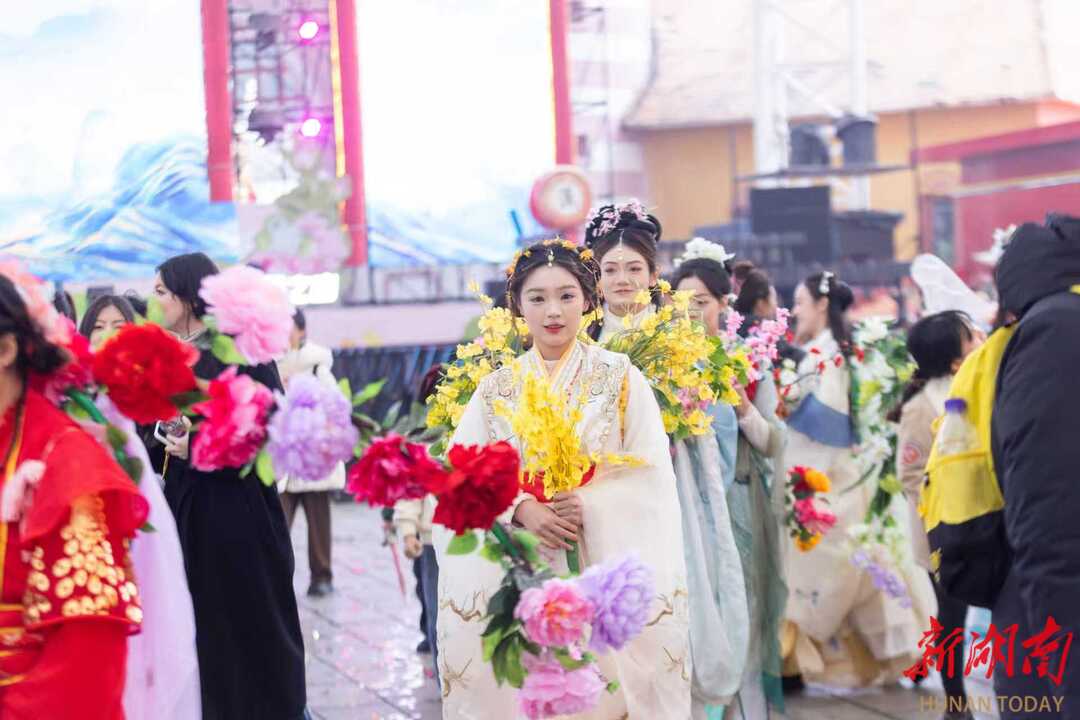 A traditional Chinese "Twelve Flora" themed event was held at the Changsha Window on the World on March 8, the International Working Women's Day (IWD). Various activities such as a parade of twelve flower gods and goddesses, a hundred-person spring banquet, and interactive traditional Chinese performances took place in succession, creating an immersive cultural experience for visitors. The event innovatively blended floral culture, traditional cuisine, and courteous reception for women, showcasing Changsha's distinctive spring cultural tourism offerings. (Photo/Deng Ting)