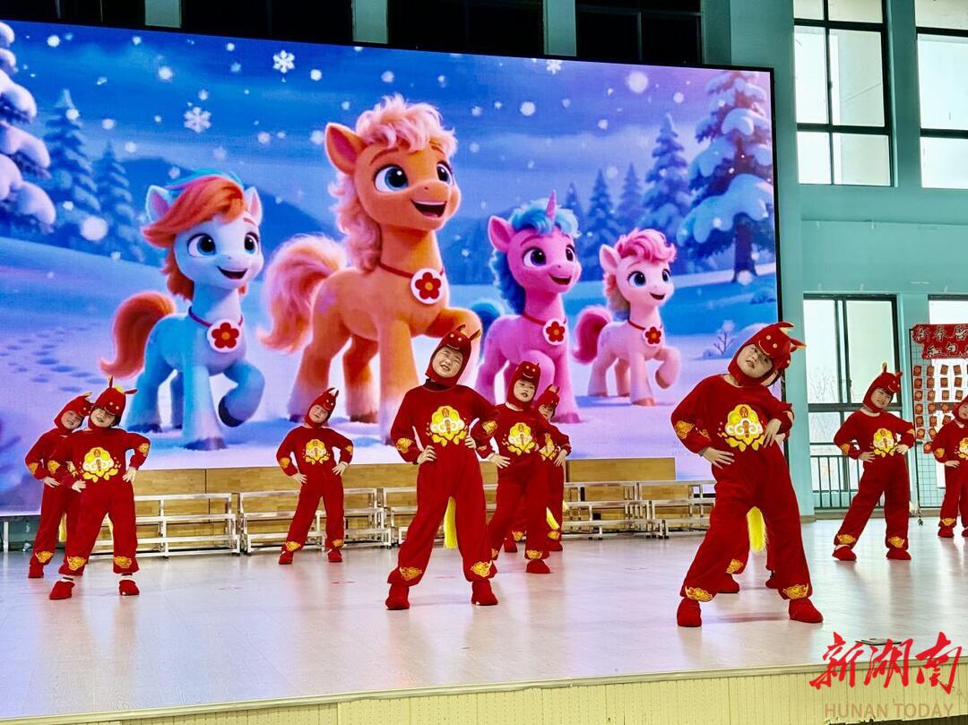 二年级开场节目《快乐小马》让现场氛围充满活力。湖南工业大学附属实验学校校长卓志龙登台击鼓鸣志,三声铿锵有力的鼓声响彻全场,分别象征着“立德修身、勤学善思、志存高远”的殷切期望。他号召全体学子争做新时代的“骐骥少年”,以梦为马,不负韶华。
