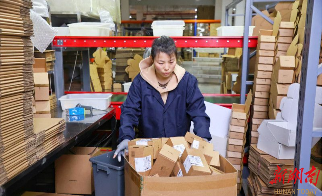 在长沙三顿半咖啡有限公司咖啡分拨中心,货架被货物填得满满当当,自动化分拣系统有序运转,仓外物流车辆穿梭如织。工人们仔细核对电商订单信息,根据咖啡种类和数量进行打包,接着填充缓冲材料,从打印机取出标签并张贴抚平,确保让消费者能顺利收到心仪的咖啡……整个过程行云流水、一气呵成。