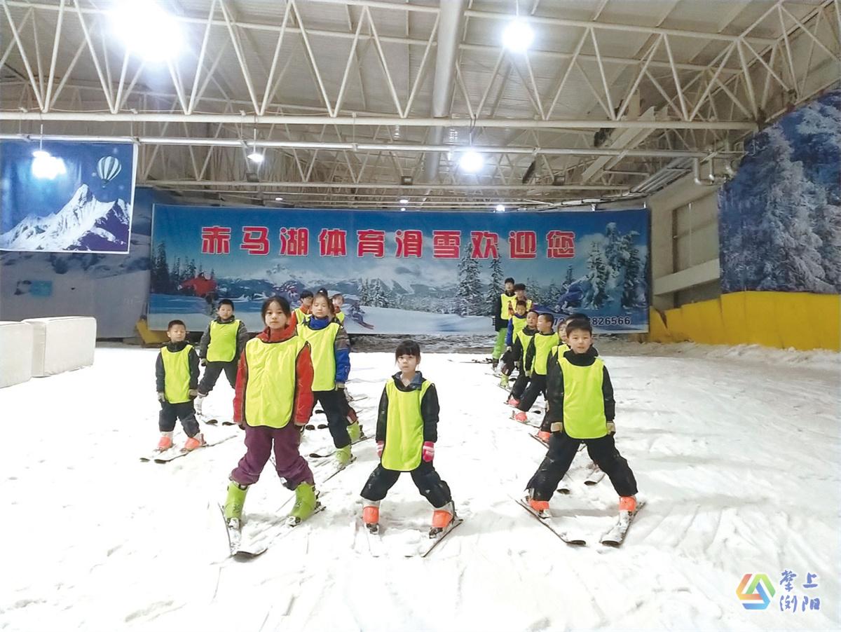 学生们在教练的带领下学习滑雪。赤马湖体育滑雪场供图。