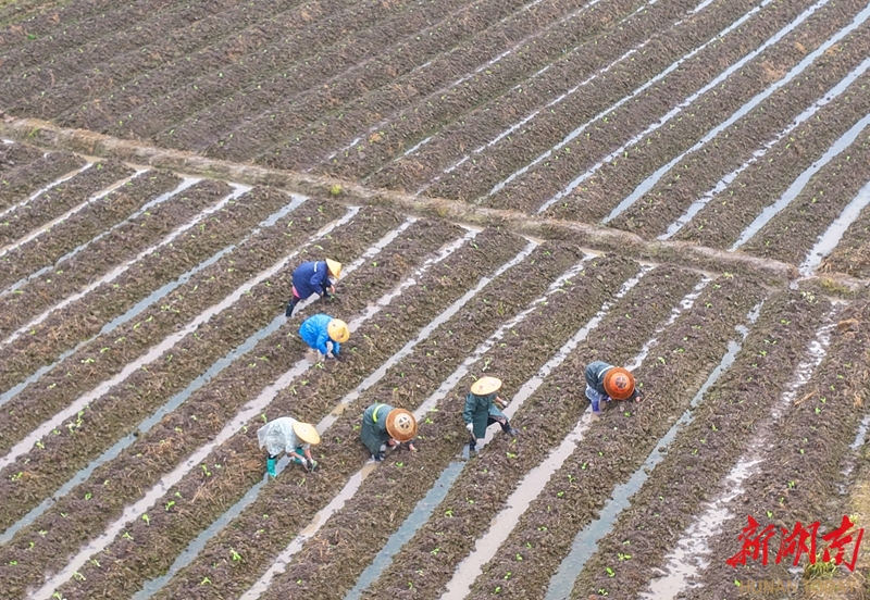 3月9日,蓝山县土市镇三广头村,村民在细雨中耕种。时值春耕备耕时节,当地农业生产有序开展,田间地头呈现一派繁忙景象。黄春涛 摄(湖南图片库)