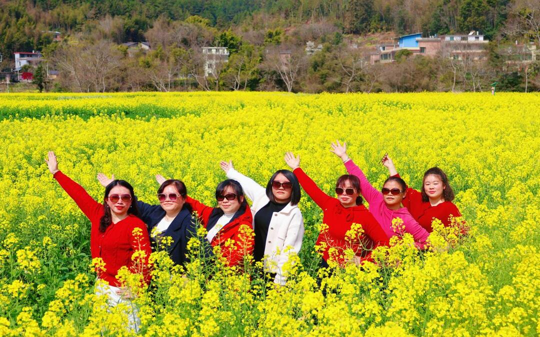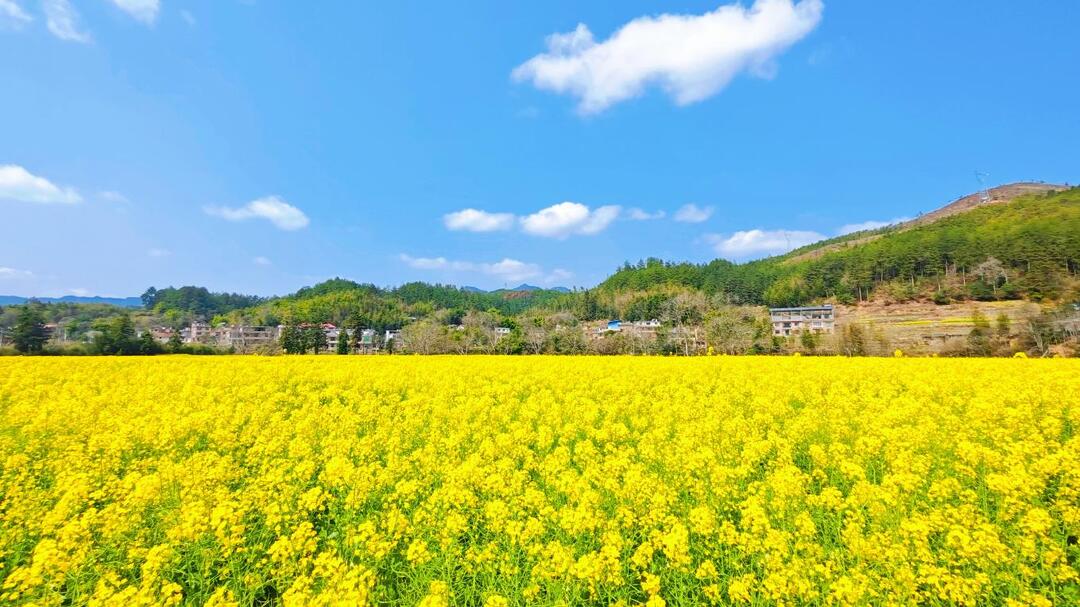 湖南日报·新湖南客户端3月10日讯(通讯员 郭成)近日,桂东县大塘镇全溪村、蛟龙村千亩油菜花迎春盛放。金色花海连绵起伏,与青山、村舍、溪流相映成趣,绘就一幅清新秀美的春日田园画卷。微风拂过,花浪轻摇,花香沁人心脾,不少游客前来踏青赏花、拍照打卡,尽享春日美好。