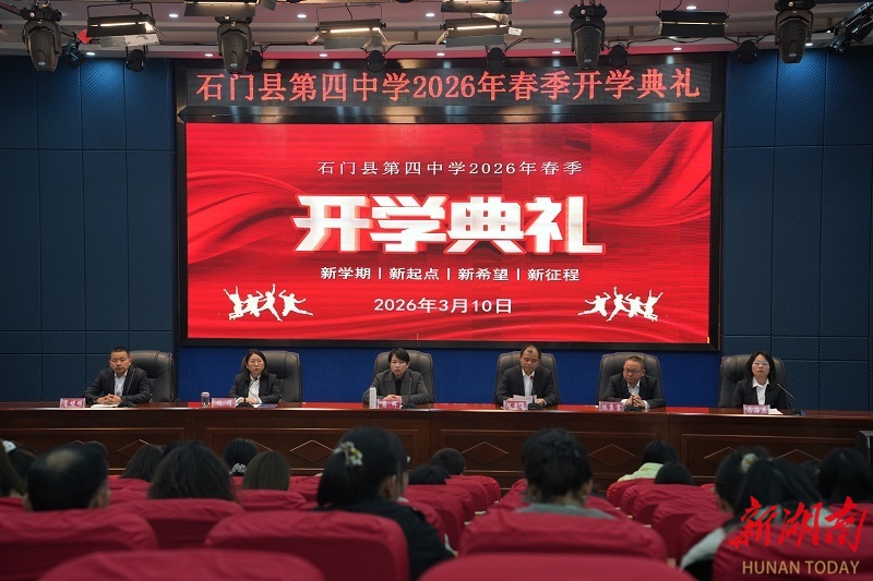 科教新报·新湖南客户端讯(通讯员 陈洁君)3月10日,石门县第四中学举办2026年春季开学典礼。典礼采用主会场与分会场云直播形式,全校师生线上线下同步参与,该校校长陈景喜主持了典礼。