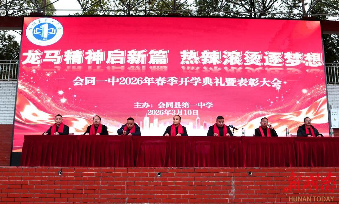 科教新报·新湖南客户端讯(通讯员 穆克念 侯雪娟)3月10日,会同县第一中学2026年春季开学典礼暨表彰大会举行。本次大会以“龙马精神启新篇,热辣滚烫逐梦想”为主题,由学校党委副书记、校长唐邦友主持,全体师生参会。