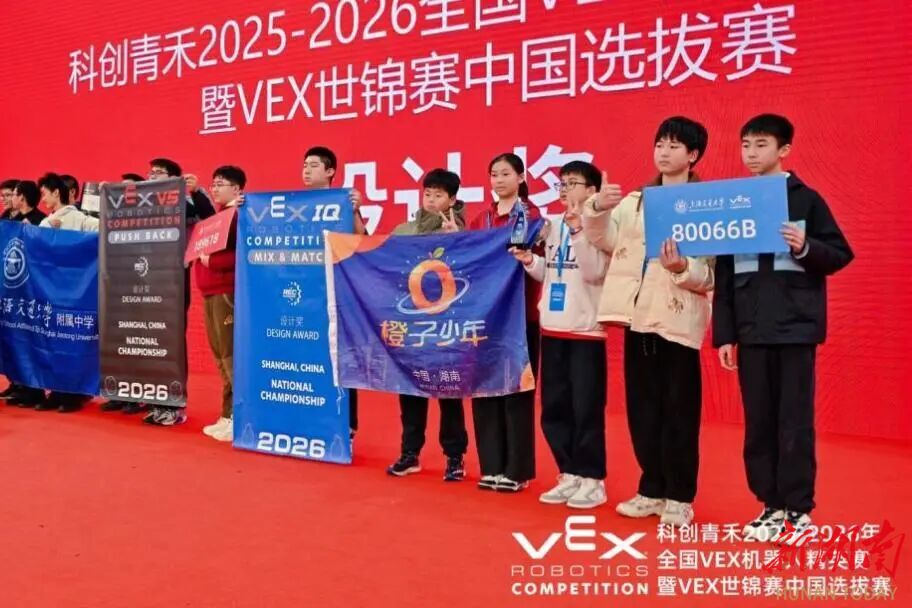 这位淡定的初一男生,近日刚在科创青禾2025-2026全国VEX机器人精英赛暨VEX世锦赛中国选拔赛上,捧回含金量极高的“设计奖”(DesignAward),成功晋级VEX世锦赛,代表中国青少年登上全球科创的最高殿堂,与来自100多个国家和地区的上万名优秀学子同台竞技。