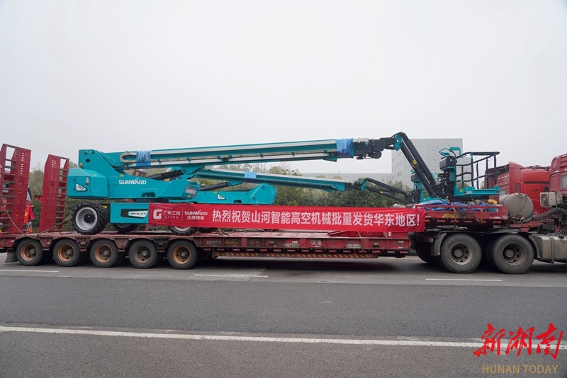 3月10日,长沙山河工业城举行发货仪式,近60台套、总金额过亿元的高端装备发往国内多地及欧美、东南亚等海外市场。此次发货产品涵盖挖掘机、桩机、高空作业平台、应急救援设备等,包括全系列挖掘机、电塔桩施工明星产品SWDM190旋挖钻机、SWT34JE-P电动直臂式高空作业平台,以及应急救援机器人、遥控挖掘机、遥控推土机等。梁超 摄(湖南图片库)