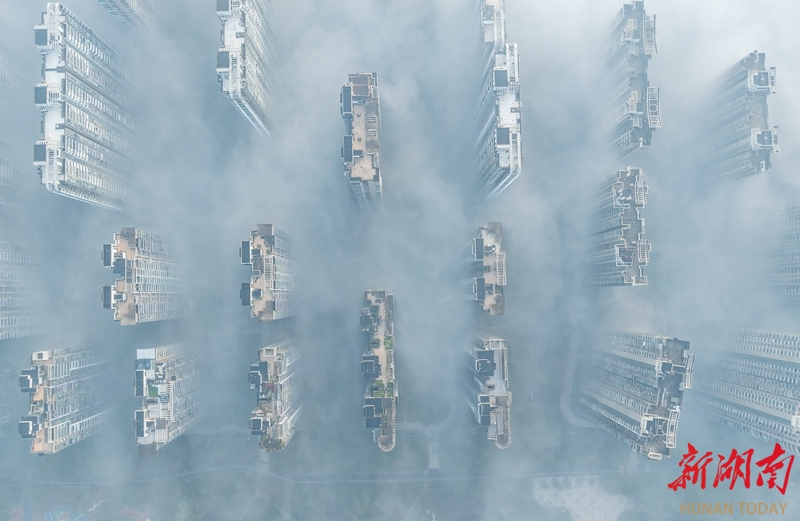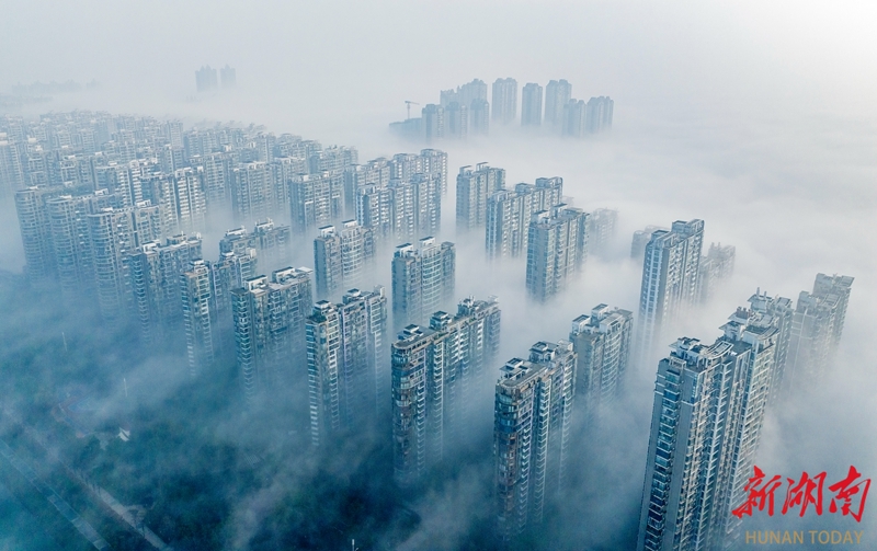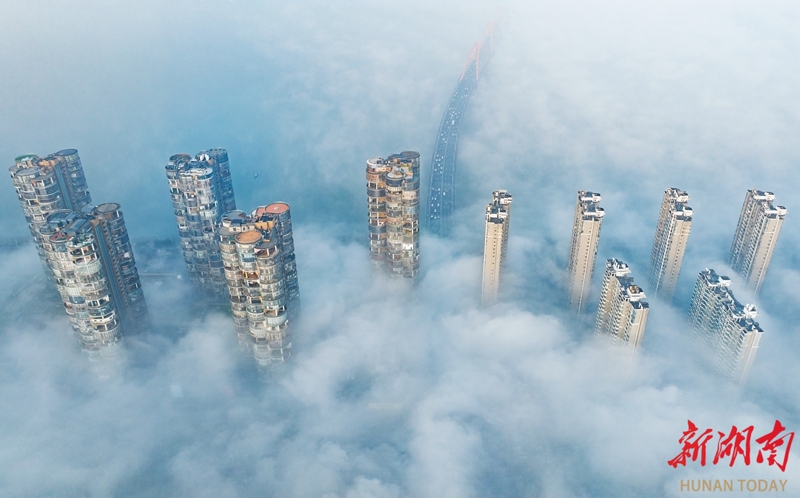 3月10日清晨,雨后初晴的长沙市区云雾弥漫。高楼在缥缈的雾气中若隐若现,宛如一幅流动的水墨画。湖南日报全媒体记者 李健 摄