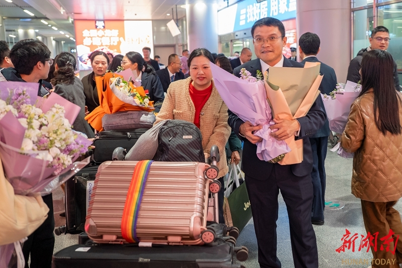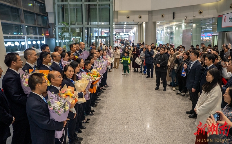 3月10日晚,长沙黄花国际机场,中国(湖南)第26批援塞拉利昂和第22批援津巴布韦医疗队完成为期一年的援外医疗任务,平安返湘。工作期间,两支医疗队积极推动开展日常诊疗、临床带教和巡诊义诊,累计完成门急诊27000余人次,中医诊疗超2万人次,实施手术1600余台,分别荣获两国卫生部授予的“杰出贡献奖”和“卓越勋章”。 湖南日报全媒体记者 童臻熙 周阳乐 摄影报道