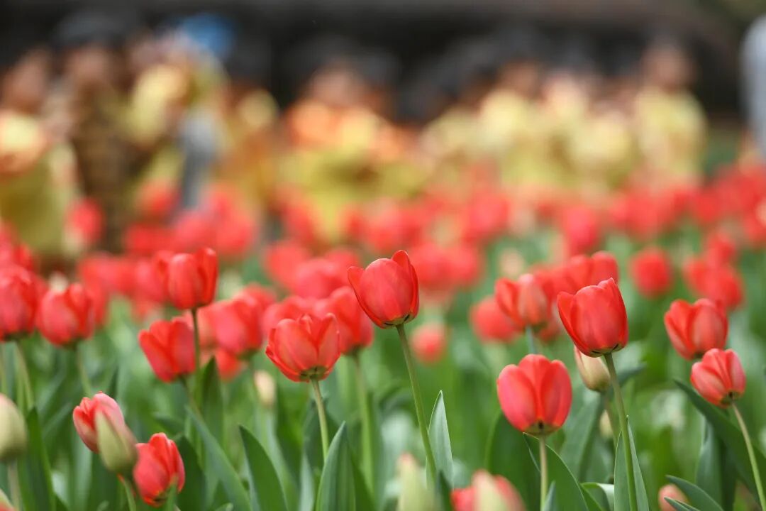 只见各色郁金香尽情绚烂