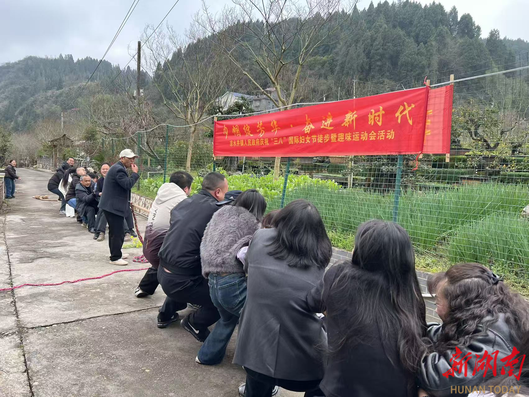 随后,大家前往美丽乡村落鹤坪村,实地观摩该村乡村振兴成果,学习基层治理与产业发展经验,近距离感受宜居宜业和美乡村新风貌。在落鹤坪村的晚晴庄园,趣味运动会热烈开场,拔河、趣味运动比赛轮番上阵,姐妹们团结协作、奋勇争先,在欢声笑语中凝聚巾帼力量、增进团队情谊。