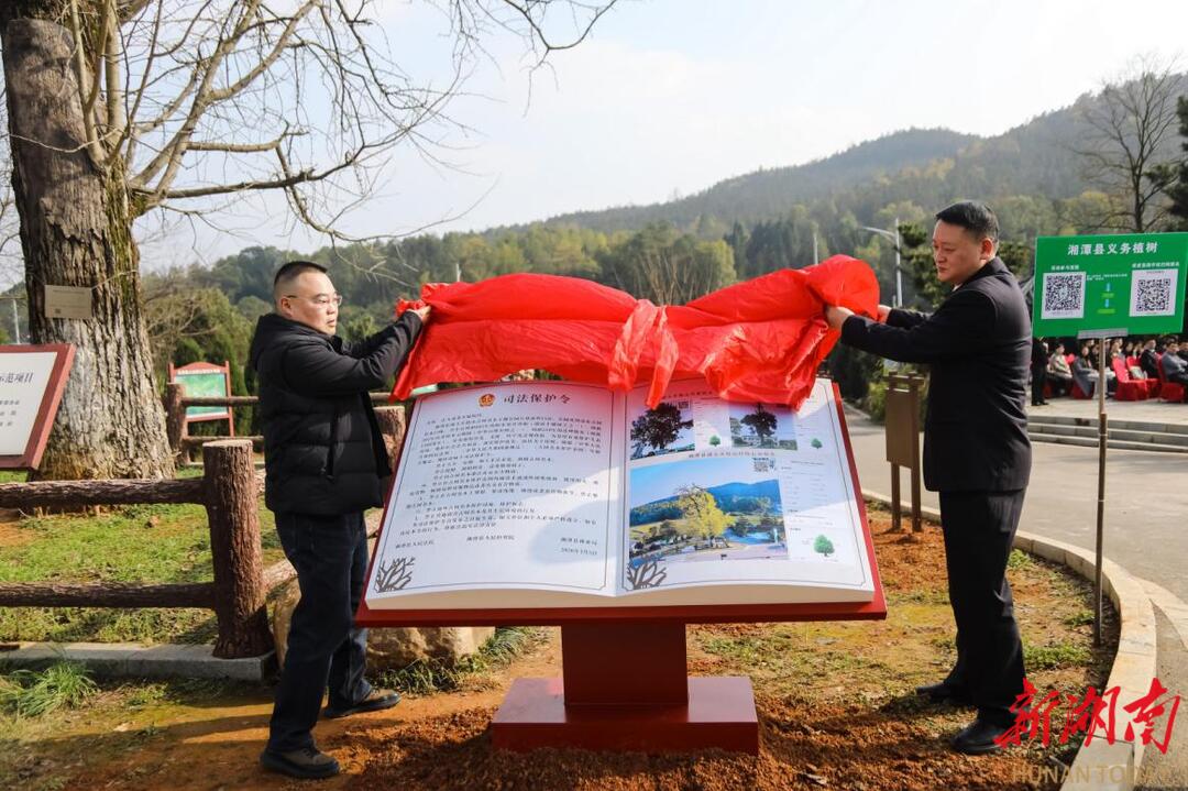 湖南法治报·新湖南客户端讯(通讯员 邹珊)隐山脚下,古木苍翠;法治护航,绿意更浓。3月10日下午,在第48个植树节来临之际,隐山生态环境司法保护基地揭牌仪式在湘潭县排头乡隐山古树公园举行。市中级人民法院、县人民法院、县人民检察院、县林业局、排头乡政府等单位联合开展活动,省人大代表、省政协委员及湘潭大学法学院师生代表应邀参加。