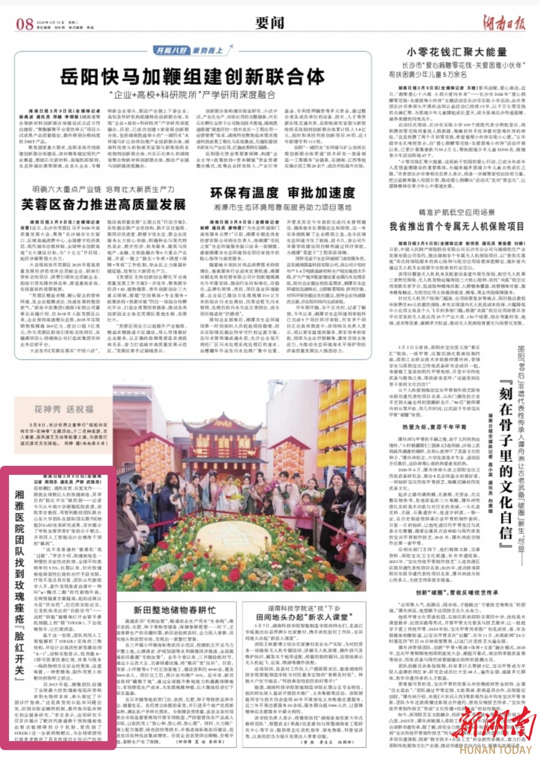 湖南日报3月11日讯(文字/视频 全媒体记者 周阳乐 通讯员 严丽 武海亮)面部潮红、遇热发烫、反复发作……困扰全球数亿人的玫瑰痤疮,其背后的“脸红开关”被找到——记者今天从中南大学湘雅医院获悉,该院李吉教授、邓智利教授团队联合山东大学团队在国际顶尖期刊《细胞》(Cell)发表研究成果,首次揭示了导致血管异常扩张的分子靶点,并利用人工智能设计出精准干预的“解药”。