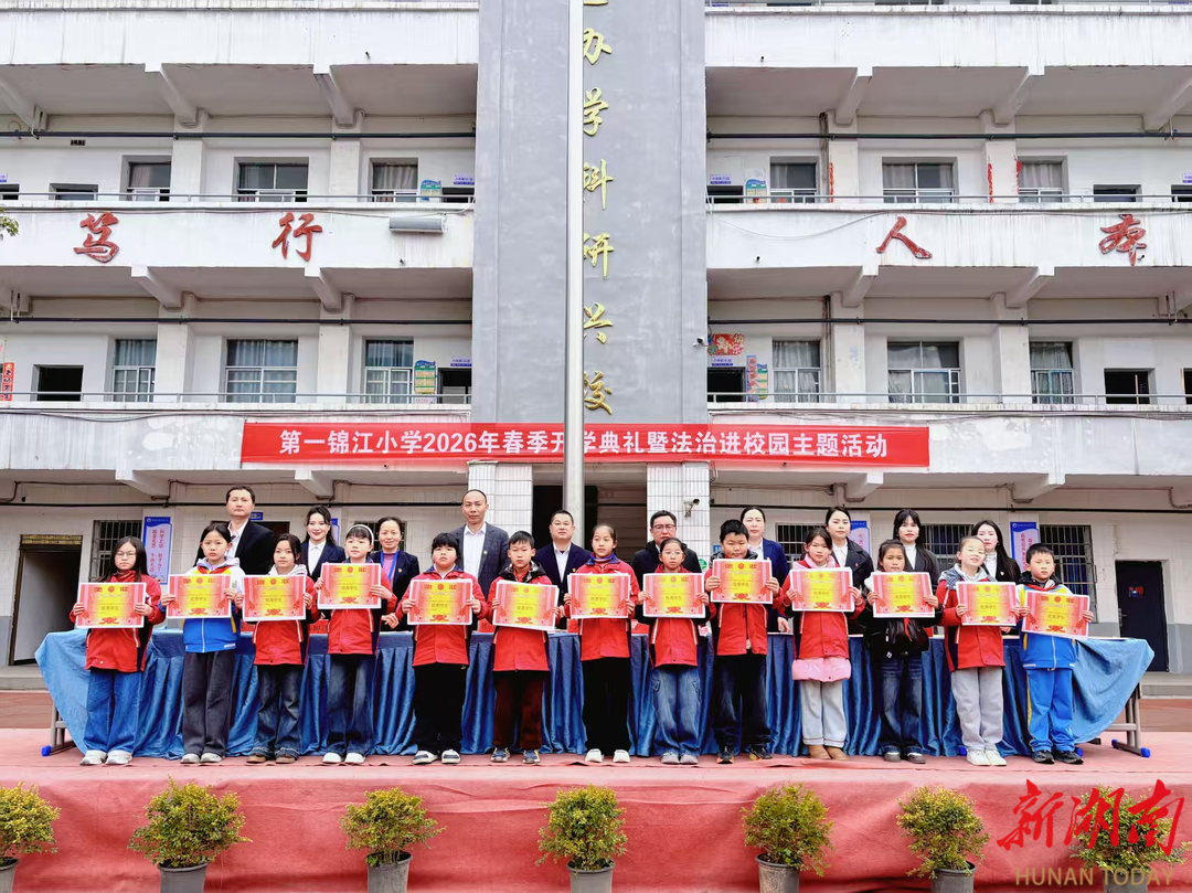 科教新报·新湖南客户端讯(通讯员 第一锦江小学工会 潘茜茜)3月11日,麻阳苗族自治县第一锦江小学全体师生齐聚校园,举行2026年春季开学典礼,以昂扬之姿迎接新学期到来。作为全国首批中小学科学教育实验校,该校此次开学典礼紧扣科创特色与全面发展理念,为全体师生注入新学期奋进力量。