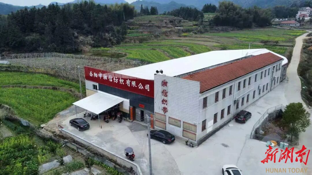张谷英镇风水村原寺湾小学内,旧校舍内机器轰鸣,织带飞转,家门口的就业工坊一片繁忙。