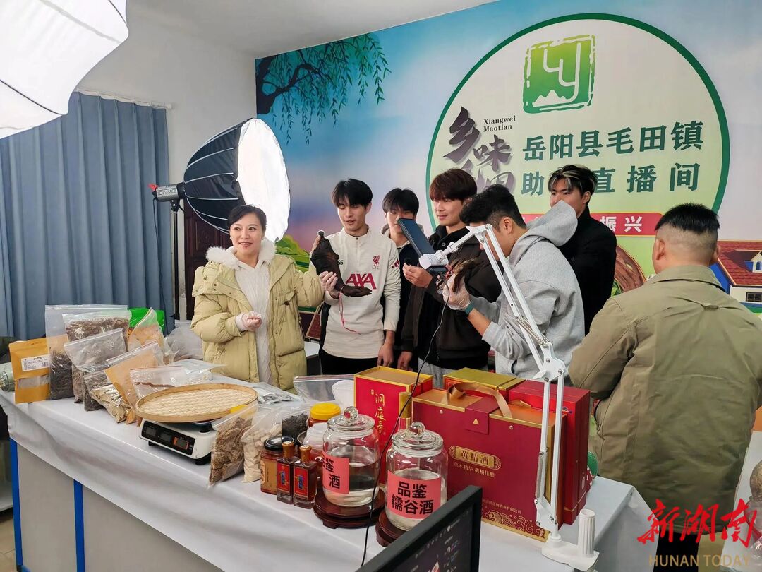 在毛田镇原八斗小学,补光灯亮起,村干部化身主播,乡音透过屏幕将山货卖向全国;