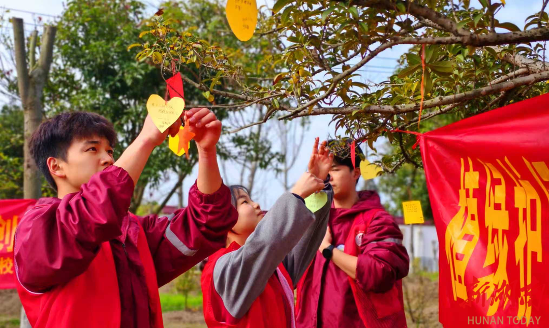 该校还设置“成长心愿卡” 环节。学生们亲手制作卡片,写下对小树的期许与环保承诺,“和小树一起走下去,快乐成长,共同守护美好校园”“以我之手,护绿玉潭”“守护每一抹绿色,共建美好家园”……卡片系于枝头,成为校园里一道独特的“绿色风景线”。每一张卡片都是一份生命契约,承载着学生们对自然的深情与责任。