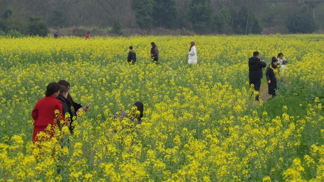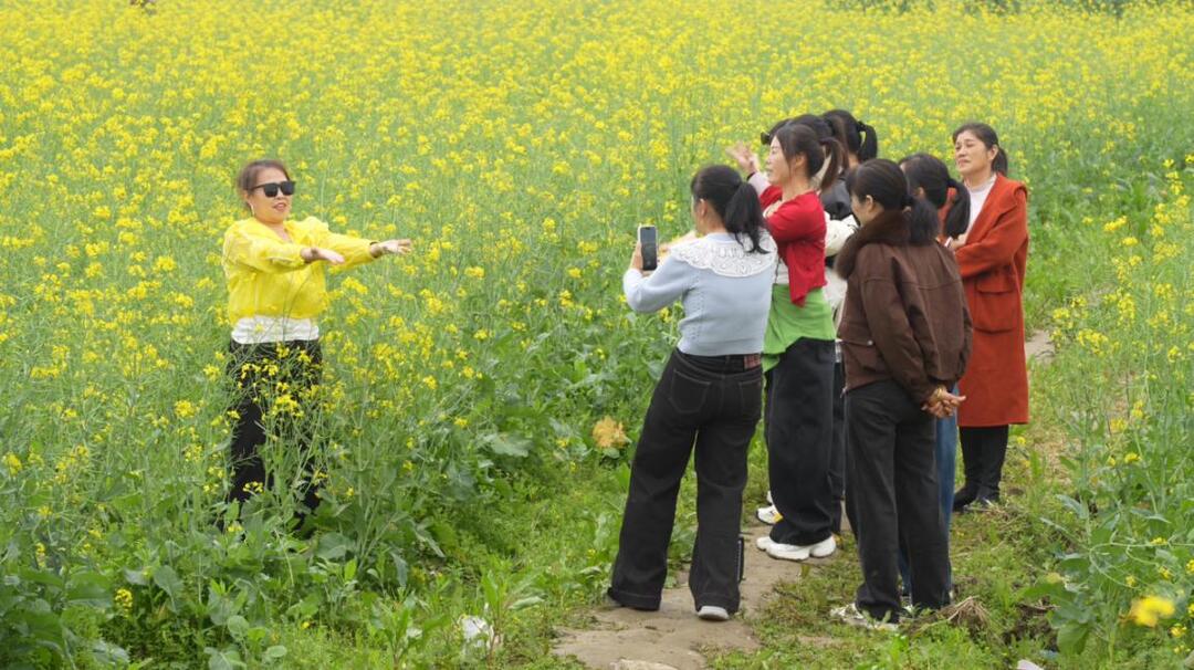 走进宜章县一六镇一六村油菜花种植基地,成片的油菜花肆意绽放,微风拂过,花浪翻滚,阵阵花香扑鼻而来,金色花海与远山近水、特色民居交相辉映,构成一幅春意盎然的田园画卷,游客漫步在田埂上,或拍照留念,或驻足观赏,尽情感受春天的气息和泥土的芬芳。“真是太美了,心情特别舒畅,我们在朋友圈看到这里的图片,专程从县城开车过来。”游客谢女士兴奋地说,“在这里不仅能看到美丽的油菜花海,玩累了还可以就近去泡温泉,吃吃当地的特色农家菜,真的是不虚此行呀。”