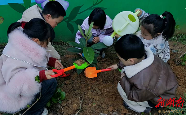 科教新报·新湖南客户端讯(通讯员 邓奎娥)3月11日,衡阳县界牌镇中心幼儿园开展了植树节实践活动,让孩子们在劳动中感受生命成长,在实践中厚植绿色情怀。