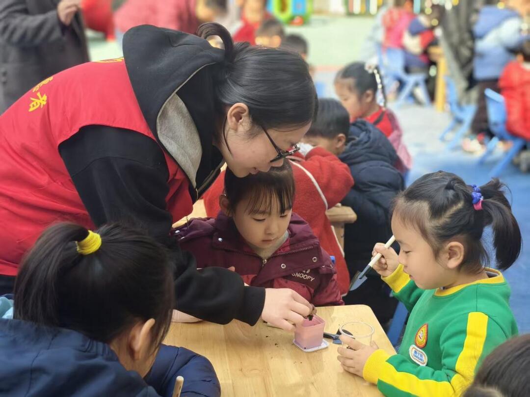 新湖南客户端3月12日讯(通讯员 龚素兰)春风吐绿,草木初萌。3月12日植树节当天,长沙市雨花区同升街道兴安社区联合同升街道社区社会组织发展服务中心,在景环小区幼儿园开展“春‘锋’十里,正‘植’有你”植树节主题实践活动。40余名幼儿在志愿者和老师的陪伴下,通过听雷锋故事、学习种植知识、亲手栽种多肉植物等方式,将绿色环保理念与志愿服务精神紧密融合,在实践中感受劳动的乐趣与奉献的意义。
