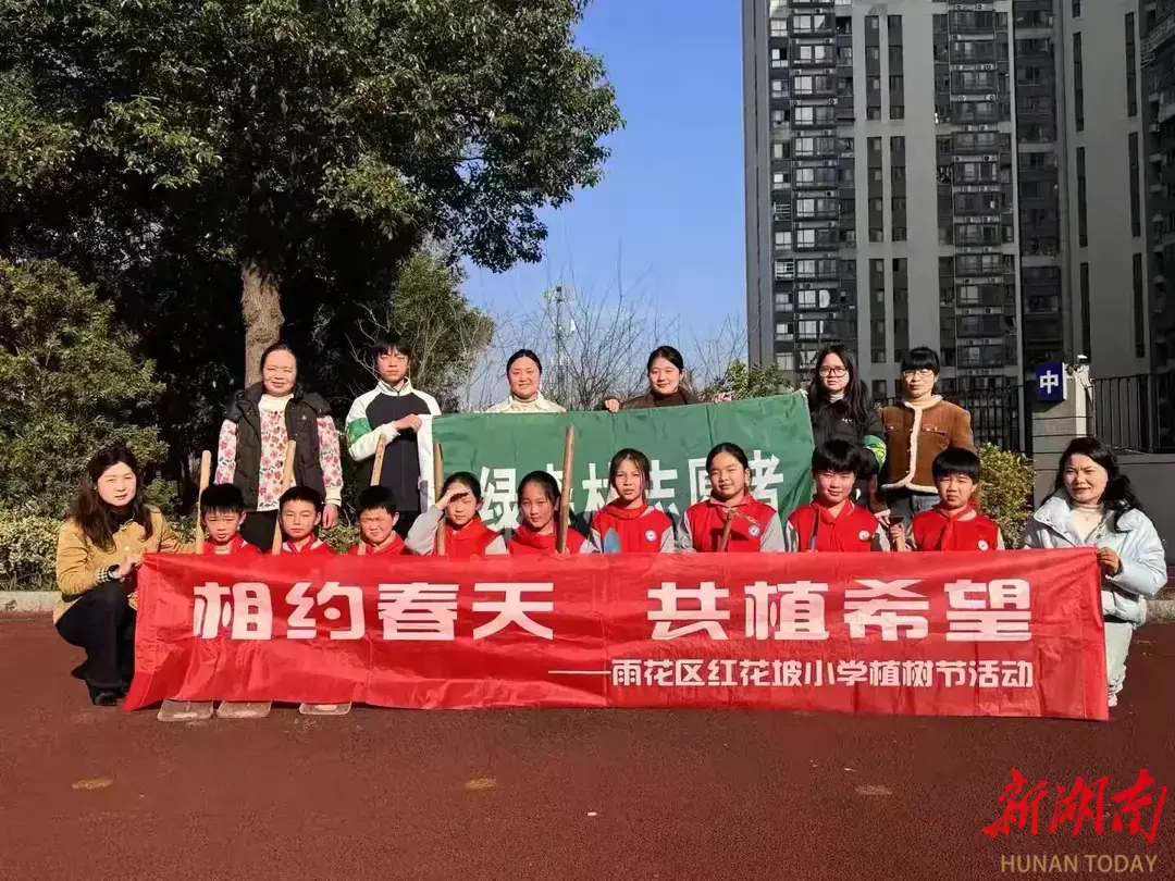 科教新报·新湖南客户端讯(通讯员 邵柱)3月11日,长沙市雨花区红花坡小学开展“相约春天 共植希望”植树节主题活动。学校党员教师代表、团员教师代表与少先队员代表齐聚校园绿化区域,以实际行动播种绿色、浇灌希望,让党团队的红色引领与生态文明的绿色理念在春日校园交融共生。