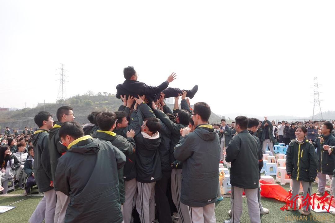 科教新报·新湖南客户端讯(通讯员 杨楠)3月12日,湘西中郡礼德高级中学全体师生齐聚学校大操场,举行高三年级励志动员大会。高中部全校师生同心聚力,以最昂扬的姿态、最坚定的信念,为高三学子吹响高考冲刺的冲锋号角,共同奔赴这场关于梦想与奋斗的青春之约。高一、高二年级学子共同参与互动,用呐喊与掌声为学长学姐加油助威。