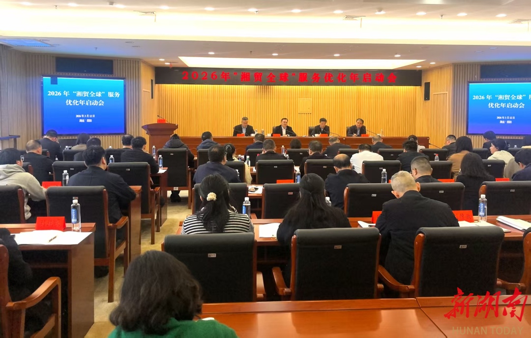 为贯彻落实省委、省政府关于“湖南企业服务年”相关决策部署,近日,省商务厅联合多部门印发实施《湖南省“湘贸全球”服务优化年行动方案》(以下简称“方案”)。3月12日,2026年“湘贸全球”服务优化年专项行动在邵阳市启动。