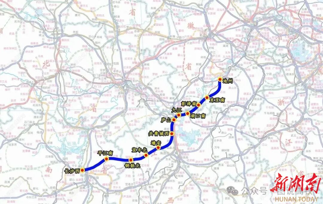 该线路定位为京广高铁与京港高铁的直连通道,建成后将实现长沙至九江1小时直达,长株潭城市群至长三角通行时间缩短30分钟,并填补湘赣边革命老区高铁空白。目前,该线路有南、中、北三条设计线路备选。